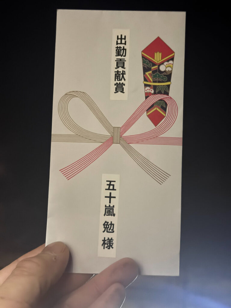 「出勤貢献賞」 をいただきました。